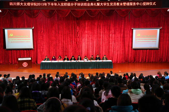 11月20日中午,四川师范大学党校第52期入党积极分子培训班文理学院培训点结业典礼在文理大讲堂举行。院党委书记高华锦、副书记骆云英及政工处、学生工作部、团委负责同志出席结业典礼并为优秀学员代表颁奖。