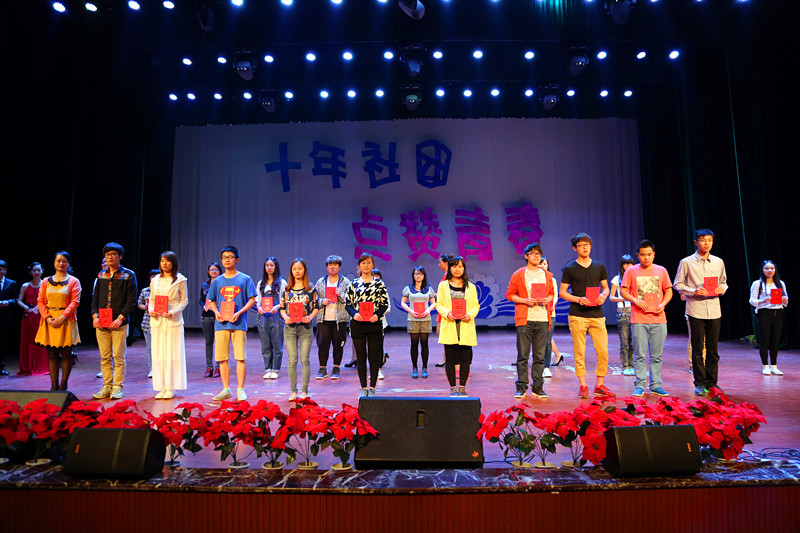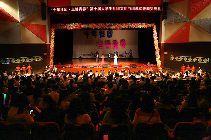4月15日晚7点,我院第十届“十年社团•点赞青春”社团文化节闭幕式暨颁奖典礼在星空剧场隆重举行。党委副书记骆云英、团委书记陈刚、学生工作部副部长韩雪、郑巍巍莅临现场,各学院社联分会指导老师及全院108个学生社团的代表们到场参加。