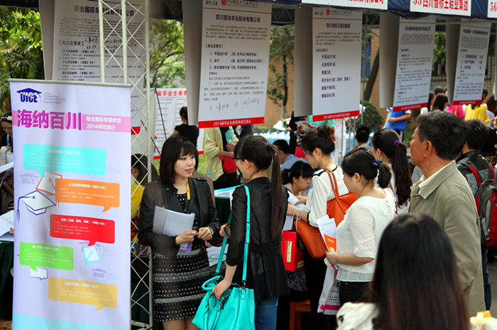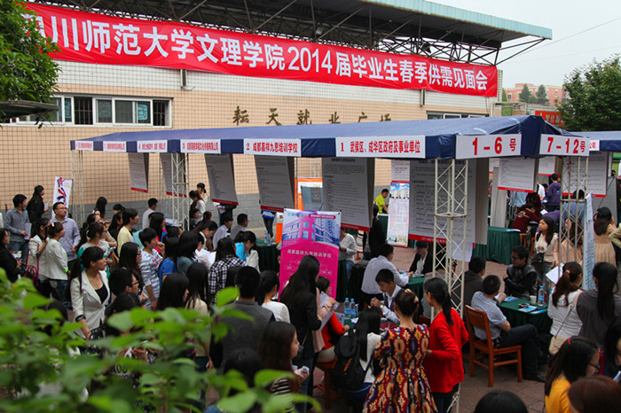 4月18日上午9点,由我院主办的2014届毕业生春季供需见面会在学院耘天就业广场拉开帷幕。见面会吸引了四川省水土保持局、武侯区发展改革局、共青团成华区委、成都华川公路建设集团有限公司等112家企业参会,提供了近4000余个岗位,涉及传媒、电子、物流、教育、医药、设计等诸多行业。
