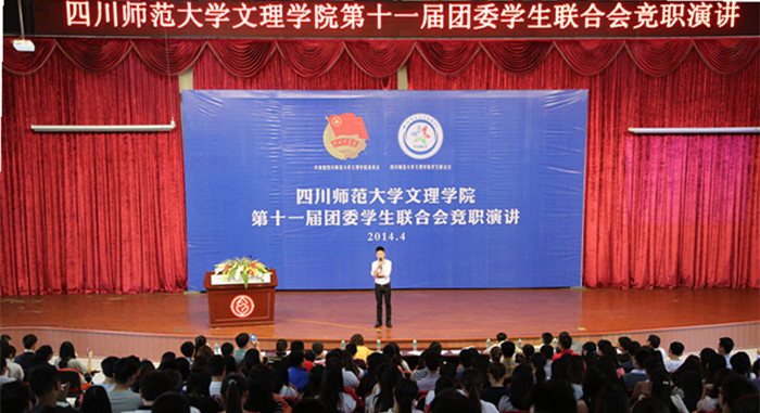 4月28日下午1点,我院第十一届团委学生联合会竞职演讲在二校区文理大讲堂举行。历经5小时的激情演讲,评委会成功遴选出第十一届团委学生联合会学生干部。