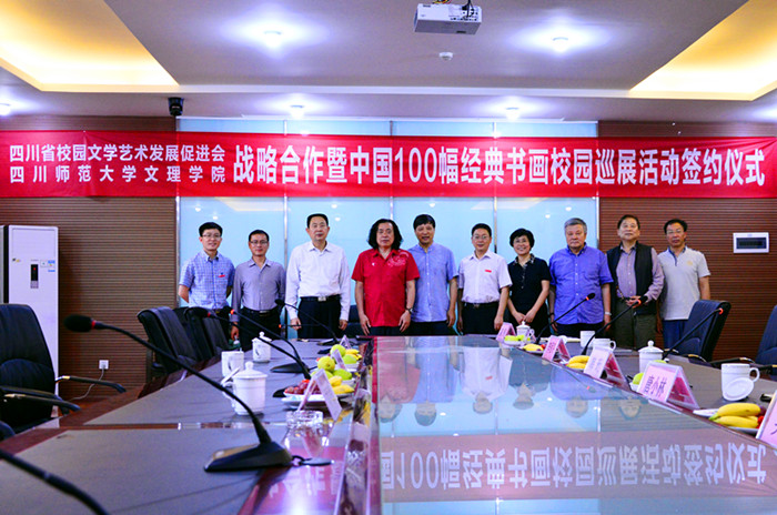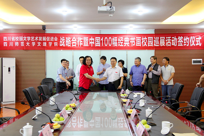 5月22日上午9点半,我院与四川省校园文学艺术发展促进会战略合作暨中国100幅经典书画校园巡展活动签约仪式在二校区举行。四川省教育厅副巡视员林强,内江市政协副主席黄忠,我院董事长韩珩、院长唐小林、副院长李爱冬等出席本次签字仪式。