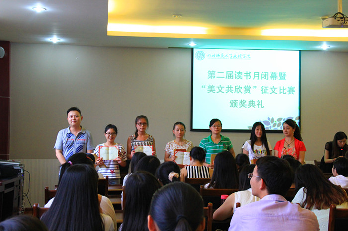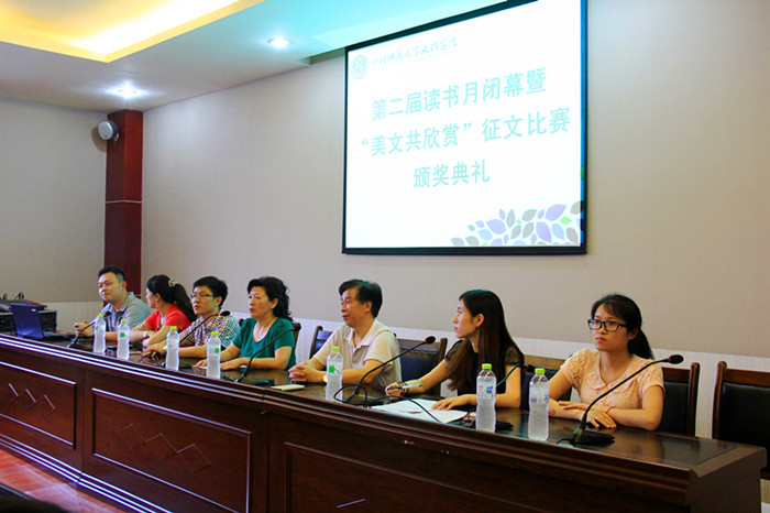 6月5日晚上7点,我院图书馆第二届读书月闭幕暨“美文共欣赏”征文比赛颁奖典礼在行政楼三楼会议室圆满落幕。党委副书记骆云英、团委书记陈刚、学工部副部长韩雪、团委副书记郑巍巍、图书馆馆长阳长宏等领导出席活动,各院系师生代表到场观看。