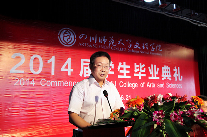 6月21日上午9时,四川师范大学文理学院2014届学生毕业典礼及学士学位授位仪式在一校区报告厅隆重举行。院长唐小林、党委书记高华锦等领导出席。典礼由副院长涂开益主持。