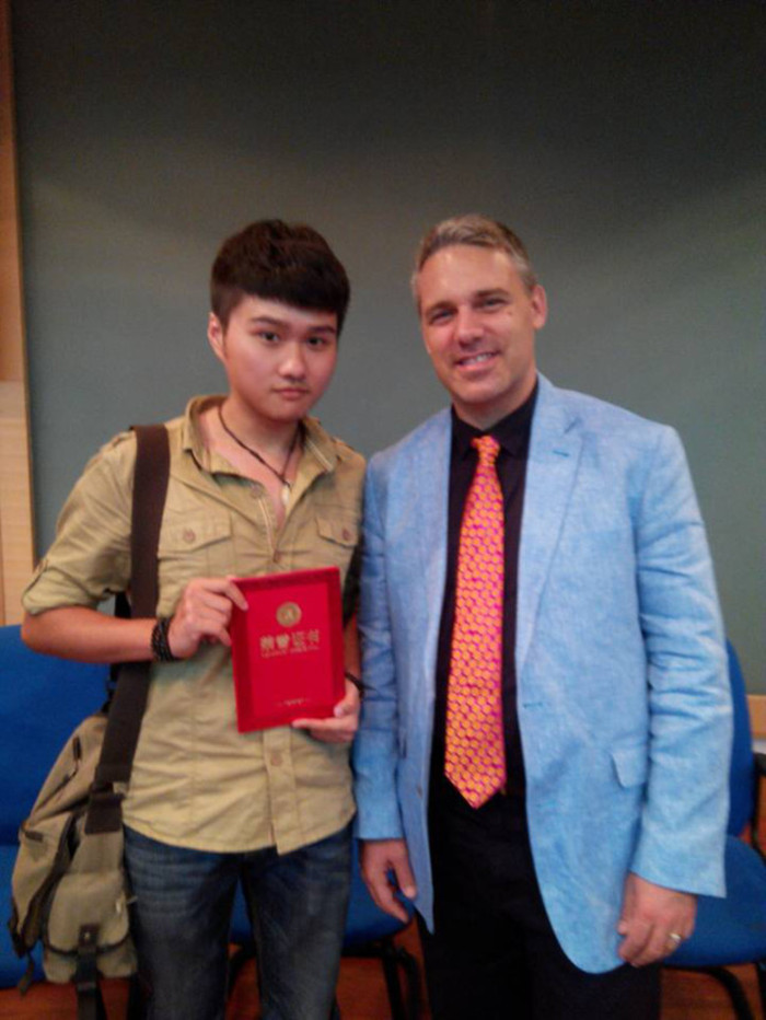 黄昱舟同学在颁奖典礼上和迈阿密国际电影节主席、韩国釜山国际电影节主席交流了心得并合影留念,极大地推广和提升了成都文理学院的知名度,展现出传媒学院的教学实力和学生创作的艺术才华。