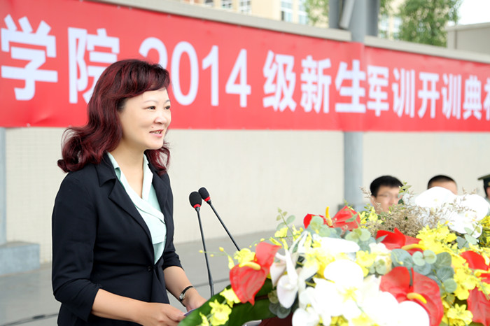 今天,我们在这里隆重集会,举行成都文理学院2014级新生军训开训典礼。借此机会,我代表学院全体师生和军训领导小组,向武警警官学院表示衷心的感谢!向参训政工干部、全体参训学员表示亲切的慰问!