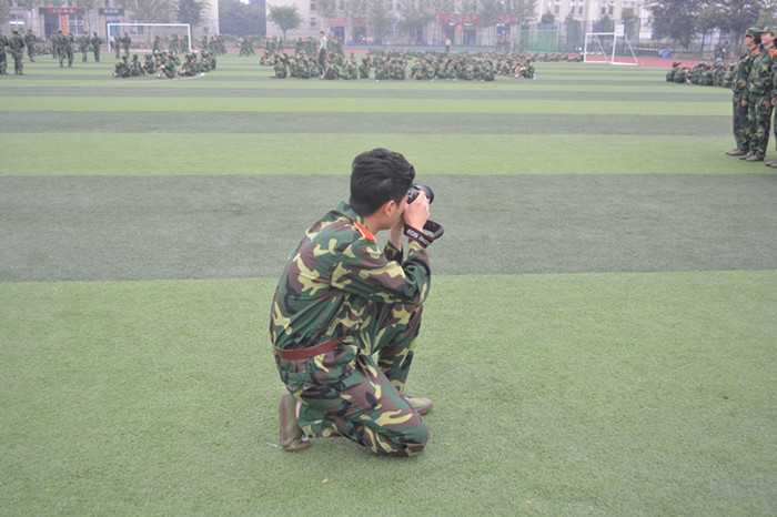 被金黄覆盖的文理学院,同时也是一个绿色泛动的地方。每年这个时候,校园里涌动着的迷彩学子们都是一道不能错过的风景。你若军训,便是晴天。被烈阳折磨得皮肤上留着汗水,然而在他们黝黑光亮的脸颊上却无时无刻不洋溢着笑容。难熬的军训岁月,这些不经意的美丽都会伴随一声快门声被定格住,让人欣赏,使人回味。
