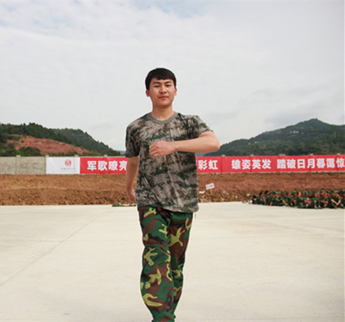 军训的操练对朱方明来说再熟悉不过了,走正步、胯腰、三位转法,每个训练项目朱方明不仅自己完成得非常出色,还经常帮助其他室友们,指导他们的动作,力求完美。他的认真严格,热心助人不仅使他受到了同学们的喜欢,也被指导员看在眼里,让他担任指导员助理。但当被大家问道为什么不去争取当标兵的时候,他总笑着以过来人的身份说道,“机会总要留给年轻人嘛!”