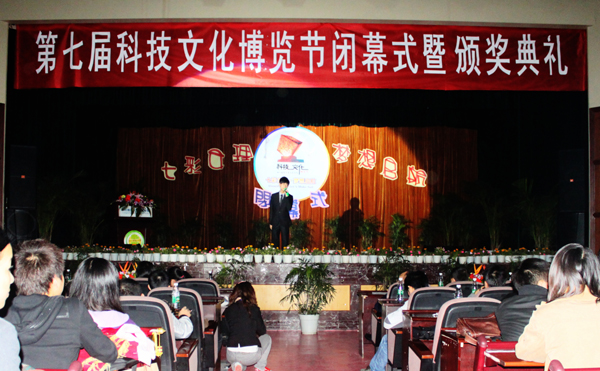 10月28日下午16时,我院第七届科技文化博览节闭幕式暨颁奖典礼在报告厅隆重举行。院长唐志成,党委书记高华锦,副院长赖先朴,党委副书记邹昌淑,政工处处长罗发海等学院领导,各系(教研室)负责人和各系学生代表共同参加了闭幕式。