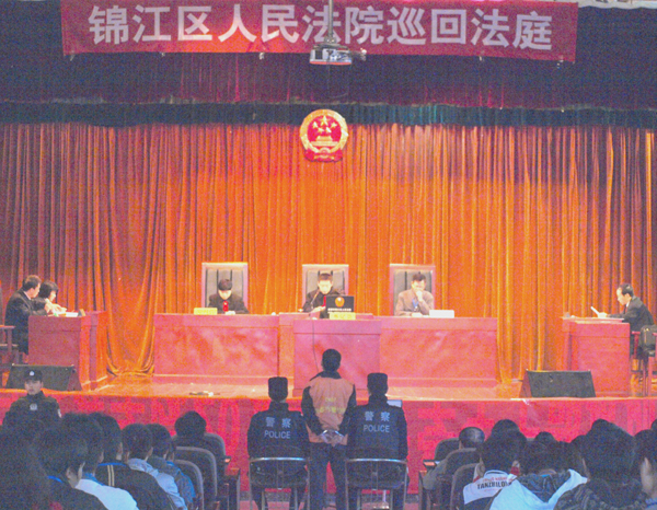 10月28日上午,由我院政法系模拟法庭协会、锦江区人民法院巡回法庭联合主办的“真实案例走进校园”活动在我院报告厅举行。此次庭审锦江区人民法院在我院现场审理一桩抢劫案,公诉机关是成都市锦江区人民检察院,被告人曾勇。合议庭由审判长、审判员以及人民陪审员三人组成。