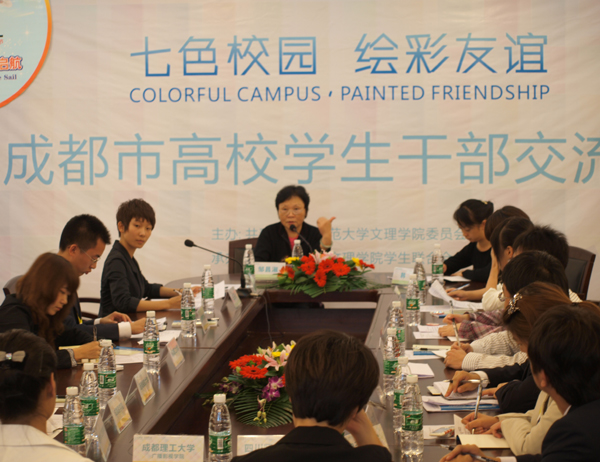 10月13日,由我院校团委、学生联合会主办的“七色校园・绘彩友谊”成都市高校学生干部交流会在汇谊楼隆重召开。来自四川大学、西南财经大学、四川师范大学等近20所高校的学生干部代表受邀参加了本次交流会。院党委副书记邹昌淑、团委副书记韩雪出席了此次会议。