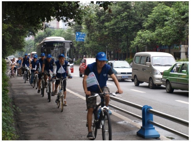 9月22日,2010年“中国城市无车日活动”在天府广场举行。本次活动倡导“绿色交通,低碳生活”,旨在提高市民对可持续城市交通发展、健康出行的认识,改善城市交通环境,构建绿色交通文化。同时通过鼓励、倡议市民自觉选择步行、自行车、公共交通等绿色方式出行,引导形成绿色出行的社会风尚。我院地平线自行车协会10名骑游志愿者,受邀参加了本次活动。
