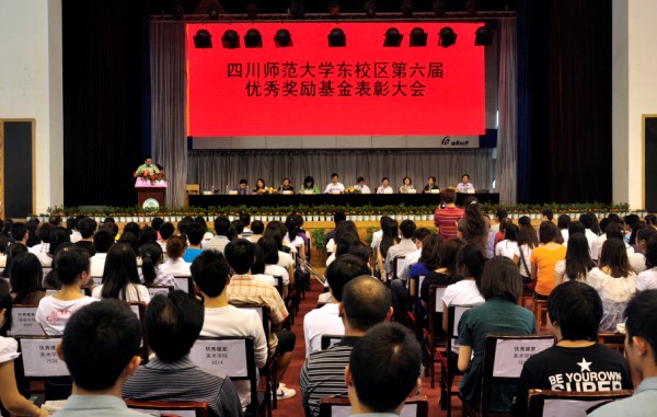 为表彰校园先进,树立优秀的校园榜样,6月3日下午,一年一度的四川师范大学东校区第六届优秀奖励基金表彰大会在东校区艺体馆隆重举行。四川师范大学校党委副书记、东校区党工委书记钟仕伦教授,我院党委书记高华锦、副书记邹昌淑及美术学院、服装学院、信息技术学院、外事学院党政领导出席会议。会议共颁发了包括优秀工作者、优秀园丁、科研创新奖、十佳文明大学生、先进班集体、优秀党支部、寝室文化节先进集体与个人、2009年度安全稳定工作先进集体与个人等共计十多项奖项。