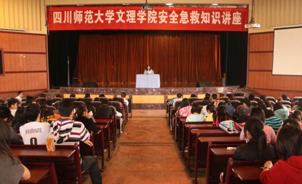 5月12日,四川师大东校区附属门诊医院副主任医师韩雯在我院报告厅举行了安全急救知识讲座。韩医生向我院学工部、后勤处的教职工和各系寝室室长介绍了安全急救方面的方法与措施。
