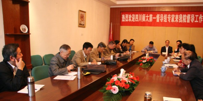 5月14日,四川师范大学第一督导组一行在皮朝刚教授的带领下莅临我院指导工作,并与我院党政领导、各部门负责人召开座谈会。学院党政领导唐志成、李副院长、邹昌淑、马新民、罗发海、康桂花,院务办、教务处、学工部、就业办、后勤处相关负责人参加座谈。
