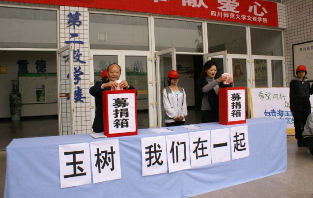 大爱无疆,情系玉树。近日,我院党委发出《关于开展向青海玉树地震灾区学校捐款活动的通知》,要求学院各党支部、系(教研室)、职能部门首先自行组织捐款,要求师生密切关注灾区的情况。通知还定于周四下午即4月22日(学生无课时间)举行集体捐款仪式。期间,各系纷纷通过宣传展板、网络、通讯等方式表达对玉树人民的支持。