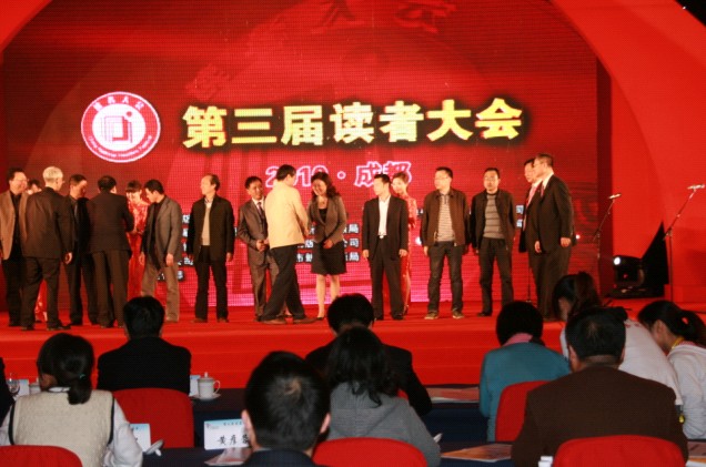 “读者大会”是由中国出版集团发起、国内26家出版单位加盟协作的大规模互动阅读会,在郑州、济南书博会中两届“读者大会”成功的经验上,本次“读者大会”以“爱读书、读好书、善读书”和“读者至上、享受阅读”为主题。与会的各位名家不仅在现场通过提问、抽奖等环节和读者进行交流,还通过网络与微薄上的网友进行互动。