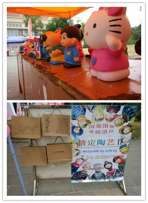 此次展览分手绘伞、手绘衣服、手绘手提袋等各类展品,在长达3米多的展示区里展示着美院高年级学生近期的高分作品,引得路过同学驻足欣赏。明日平面社精心制作的可爱陶艺小人逗得同学们眉开眼笑,一旁的手绘纸袋与创意手绘T恤衫争奇斗艳,博得广大师生的喜爱,吸引了数百人的眼球,让大家感受到了绘画的魅力。悬挂于空的手绘创意油纸伞夺得全场同学的关注,感受着其所渲染的古风意味。