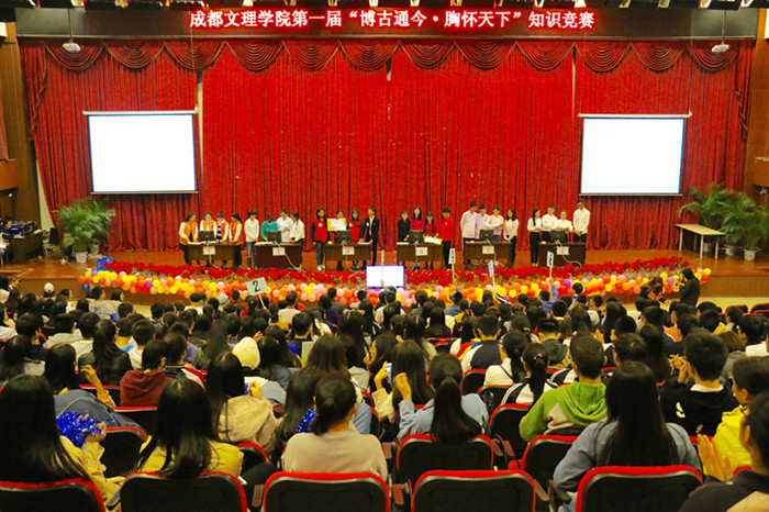 11月3日晚上7时30分,由共青团成都文理学院委员会主办、政治与法律学院承办的 “博古通今·胸怀天下”第一届知识竞赛总决赛在文理讲堂盛大举行。学院院务委员、院务办公室主任、团委书记陈刚,团委副书记郑巍巍,政治与法律学院副院长冉华庆,思想政治理论课教研部副主任夏冰等莅临比赛现场。全院500余名师生代表齐聚一堂,共观大赛。