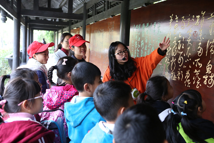 在志愿者的带领下,成师附小的师生们参观了我院图书馆、行政楼、实验楼、艺术楼及音舞楼,并在星空剧场观看了节目。参观书法长廊过程中,志愿者组织小朋友们进行了猜字谜、古诗对对碰等游戏。