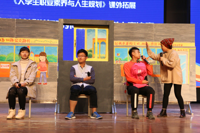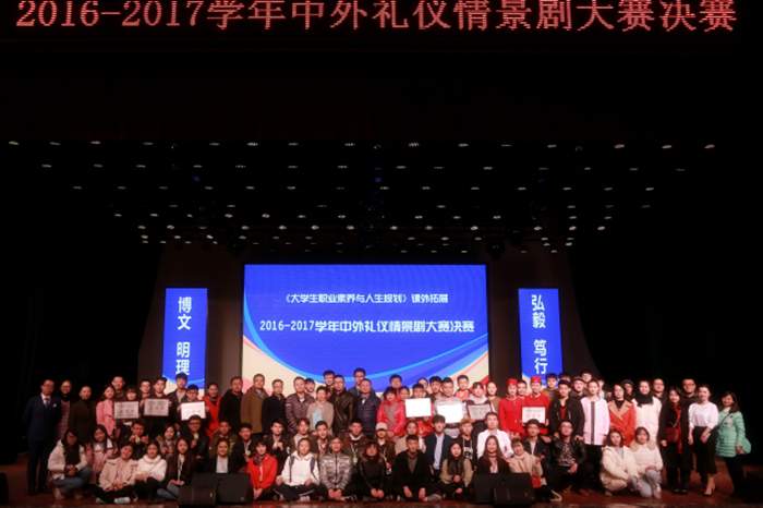 为展示当代大学生的礼仪文明素养,彰显我院新生同学的青春风采,传播大学人文精神,结合2016级《大学生职业素养与人生规划》拓展活动,由我院学生工作部素质教育课程教研中心组织的《大学生职业素养与人生规划》课外拓展2016-2017学年中外礼仪情景剧大赛于11月24日下午2时在星空剧场顺利举行。教务处处长张昊、团委副书记郑巍巍、团委办公室主任周俊霞担任此次大赛的评委,学院党委副书记骆云英、二级学院党总支书记、学工部负责人及各学院辅导员莅临比赛现场,共1000余名师生观看了比赛。