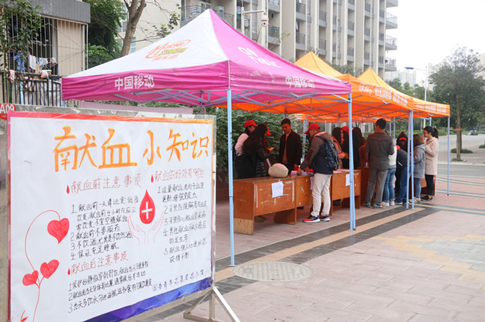 11月24日上午9时,由我院团委青年志愿者总队、成都血液中心携手举办的“无偿献血,点滴大爱”无偿献血活动在我院学生宿舍楼旁展开。