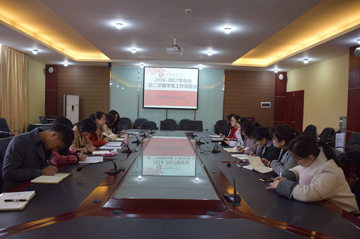 11时,会计学院在行政楼二楼会议室召开了2016-2017学年第二学期学生工作部署会。会计学院党总支书记、学生工作办公室主任韩雪及全体辅导员参加了会议。