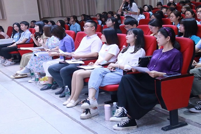 5月10日晚7时,外国语学院于学工部105举行2020—2021学年度“五四红旗团支部和优秀班集体申优答辩大会”。外国语学院党总支书记舒彪、学工办主任徐杏、学生第一党支部书记赵华、学生第二党支部书记罗禹、分团委书记杨娟、辅导员林风琴、赵政、鞠璇、南朵、罗欣出席并担任本次答辩的评委。