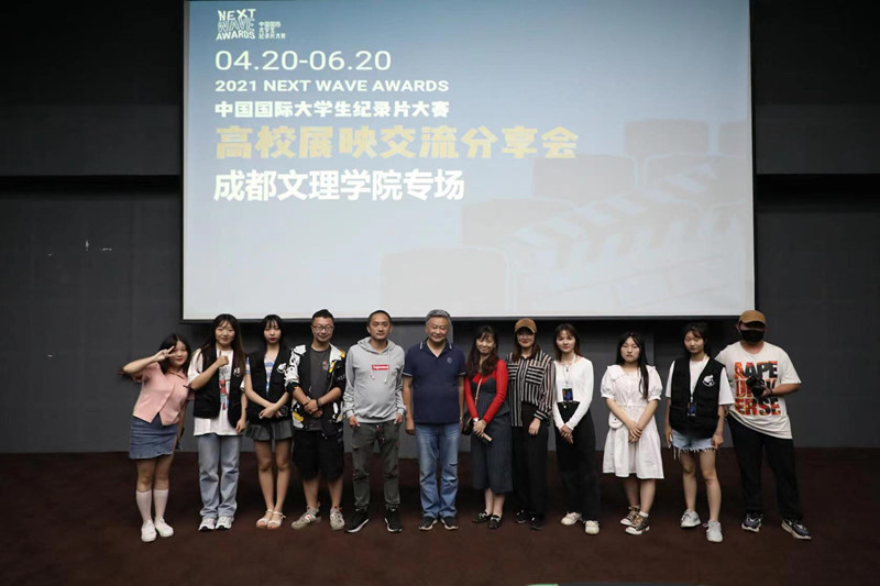 为期一周的中国国际大学生纪录片大赛高校展映交流分享会成都文理专场于5月21日晚在艺术楼附楼107落下帷幕。传媒与演艺学院院长陈燕、广播电视教研室主任雷涛、传媒与演艺学院王永刚教授、肖光毅老师,特邀嘉宾四川电影家协会会员导演、摄影朱松林老师,制片人高健老师参加本次展映交流。