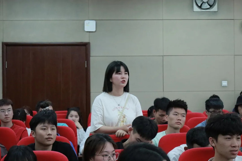 讲座尾声,侯开嘉教授邀请在场的老师同学们积极提问,2019级书法学2班廖彦华同学作为我校学生代表向鲍贤伦先生进行提问,鲍贤伦先生循循善诱,细心解答,本次讲座在轻松愉快的氛围中结束。