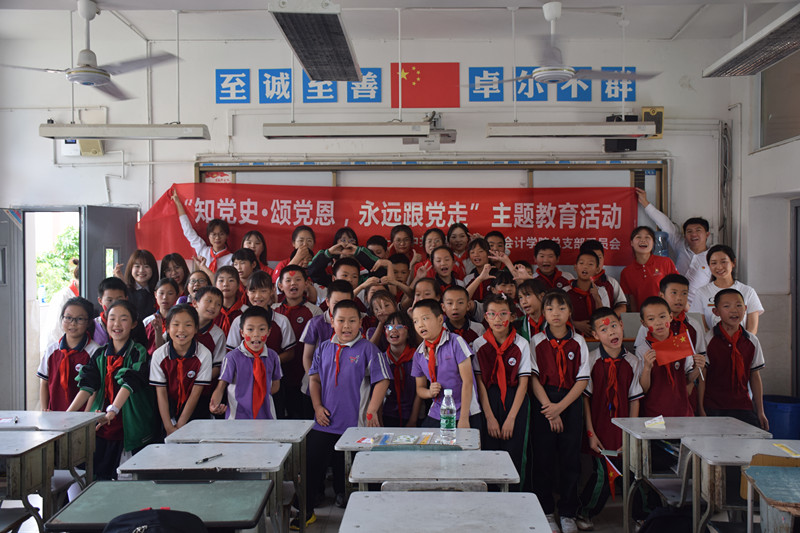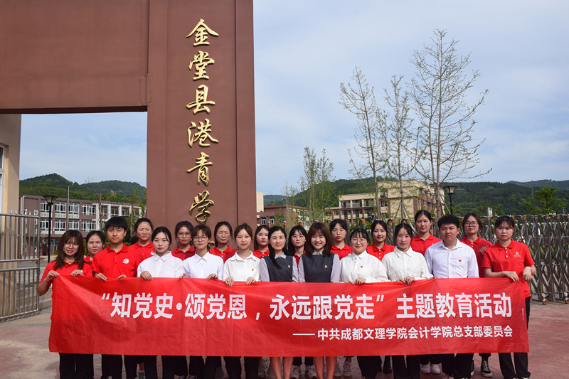 6月4日下午3时,会计学院党总支在金堂县港青学校开展“知党史•颂党恩,永远跟党走”主题教育活动。会计学院学生二支部书记陈琴、学生三支部书记杨佳及学生党员参加了本次活动。