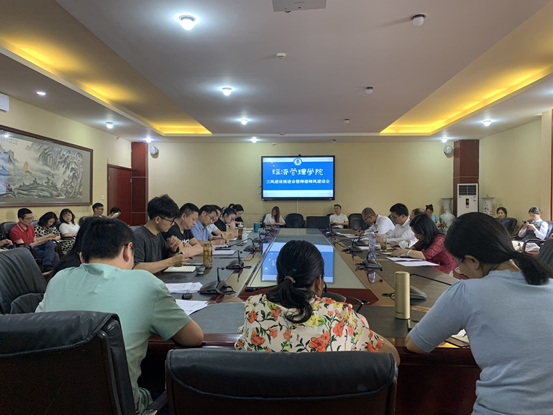 6月10日,经济管理学院于第二会议室召开了三风建设推进会暨师德师风建设会,经济管理学院院长蒋和胜,党总支书记李江,副院长李瑞强、程庆出席会议,全院教职员工到场参加。