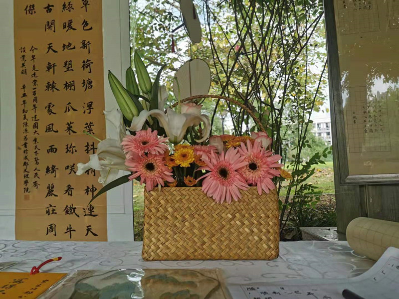 师生互动活动区域主要包括硬笔、软笔书写和插花活动。美育学校教师刘茂利、侯旭东、辛纪者现场指导,主要讲解书写时握笔、姿势、工具、字符设计等。美育学校教师张丽莉老师通过插花互动活动告诉我们,当代大学生除了掌握本专业的知识以外,对生活美学也有了更多的要求,花艺,既让同学们懂得插花理论实践知识,提高审美情趣,同时又让同学们对生活美学有更专业的理解。发现美、探索美希望同学们在花艺的学习中,悟道生活的乐趣,培养阳光的心态。