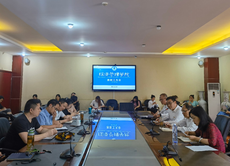 6月10日下午,经济管理学院于第二会议室召开全院教职工大会。经济管理学院院长蒋和胜,党总支书记李江,副院长李瑞强、程庆出席会议,全院教职员工到场参加。