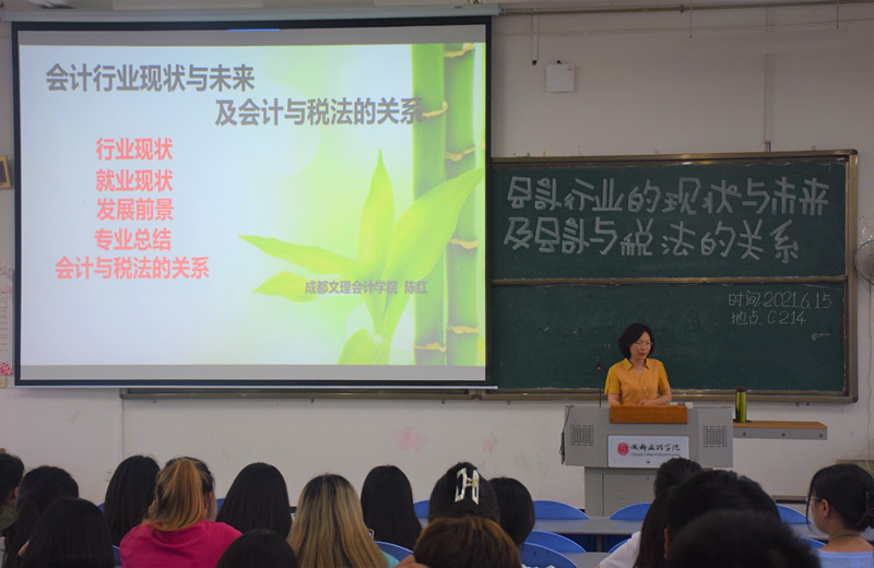 6月15日晚6时30分,会计学院于主教学楼C214举办 “会计行业现状与未来及会计与税法关系”专题讲座。会计学院副教授陈红主讲,2020级全体学生参加了此次讲座。