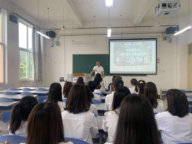 6月17日上午10时30分,外国语学院在行政楼B310开展2021届毕业生交流座谈会。外国语学院党总支书记舒彪,学工办主任徐杏,第一学生党支部书记赵华,分团委书记杨娟,社团联合分会指导老师林凤琴,自律委员会指导老师赵政,辅导员鞠璇、罗欣、南朵、赵礼婷及2021届毕业生代表参加此次座谈会。