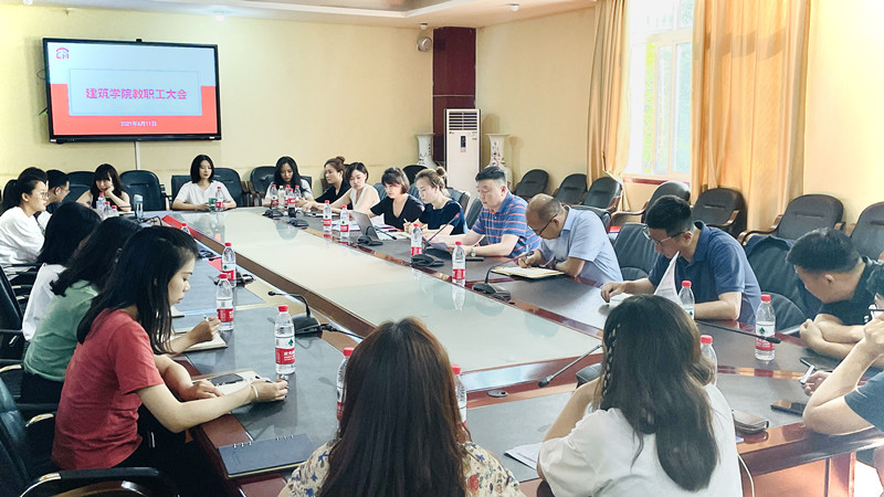 6月11日下午,建筑学院于行政楼第二会议室召开教职工大会,建筑学院院长牟江、党总支书记贺元烨及全院教职工参会,贺元烨主持会议。