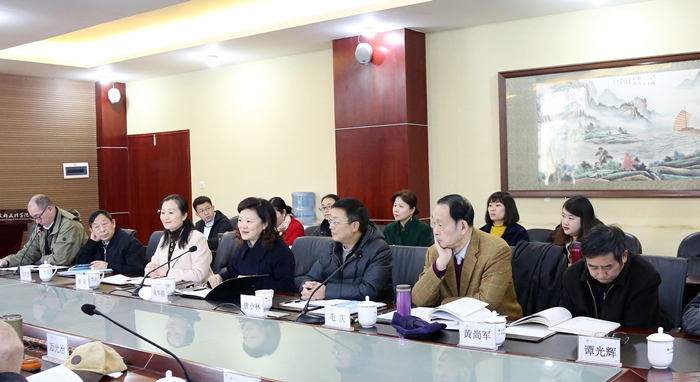11月24日上午9时30分,我校在二楼会议室召开《四川民歌采风录》暨民族民间文化遗产保护与研究学术研讨会,四川师范大学原副书记钟仕伦,四川师范大学文学院原院长、成都文理学院民歌研究所所长万光治,我校校长唐小林、党委书记高华锦等领导参加研讨会。