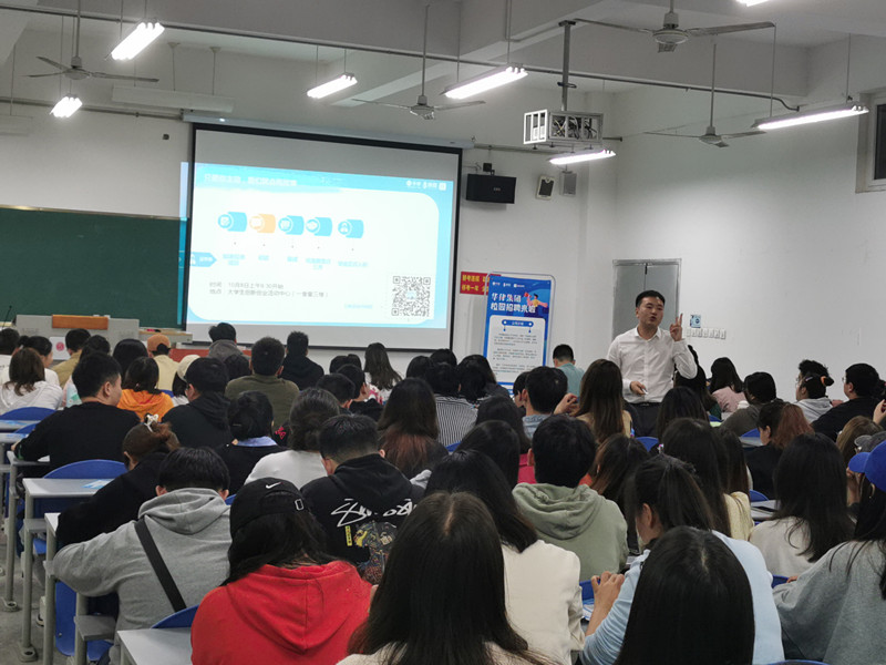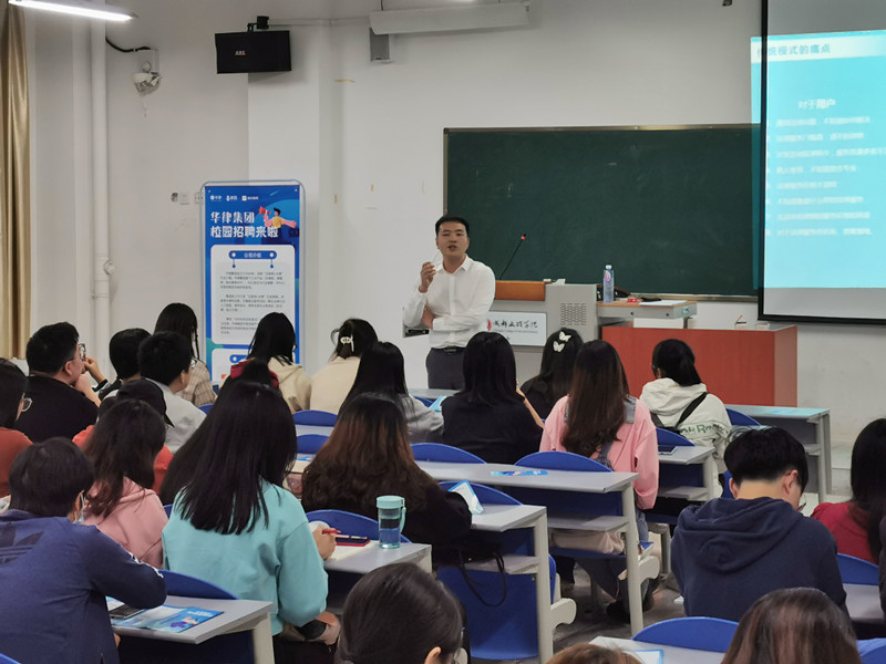 宣讲会由华律集团C端业务负责人邱超主讲,他以“互联网+法律”为切入点,为同学们介绍了行业前景、企业愿景、公司文化、岗位要求及员工福利等内容。重点介绍了公司的保护薪酬制度和扁平化管理模式,有效减轻了同学们初次面对求职的不安和困惑,为入职后职业发展也提供了方向。宣讲会现场,同学们与主讲人积极互动,现场气氛热烈,单位现场收到了部分求职简历。